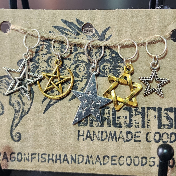 Stars, Stars, and more Stars Stitch Markers - set of 5