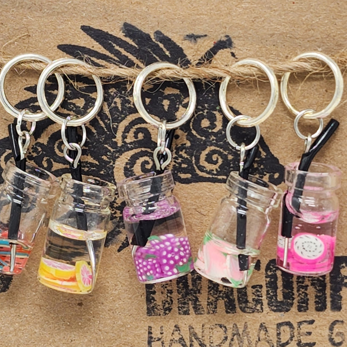 Glass Fruit Waters w/Straw Stitch Markers - set of 5